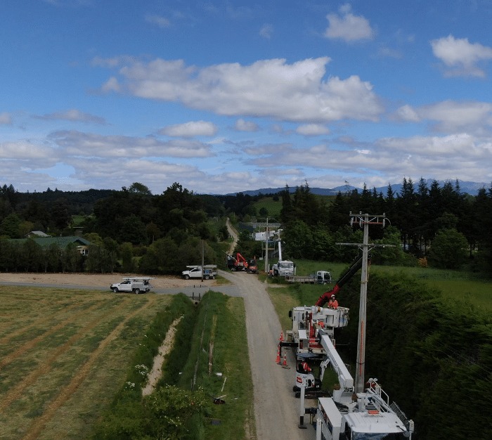 The route of any new electricity and/or telecommunication reticulation is surveyed and shown on a plan prepared by a surveyor. Once approved by us, the plan is deposited with Land Information NZ by the surveyor.